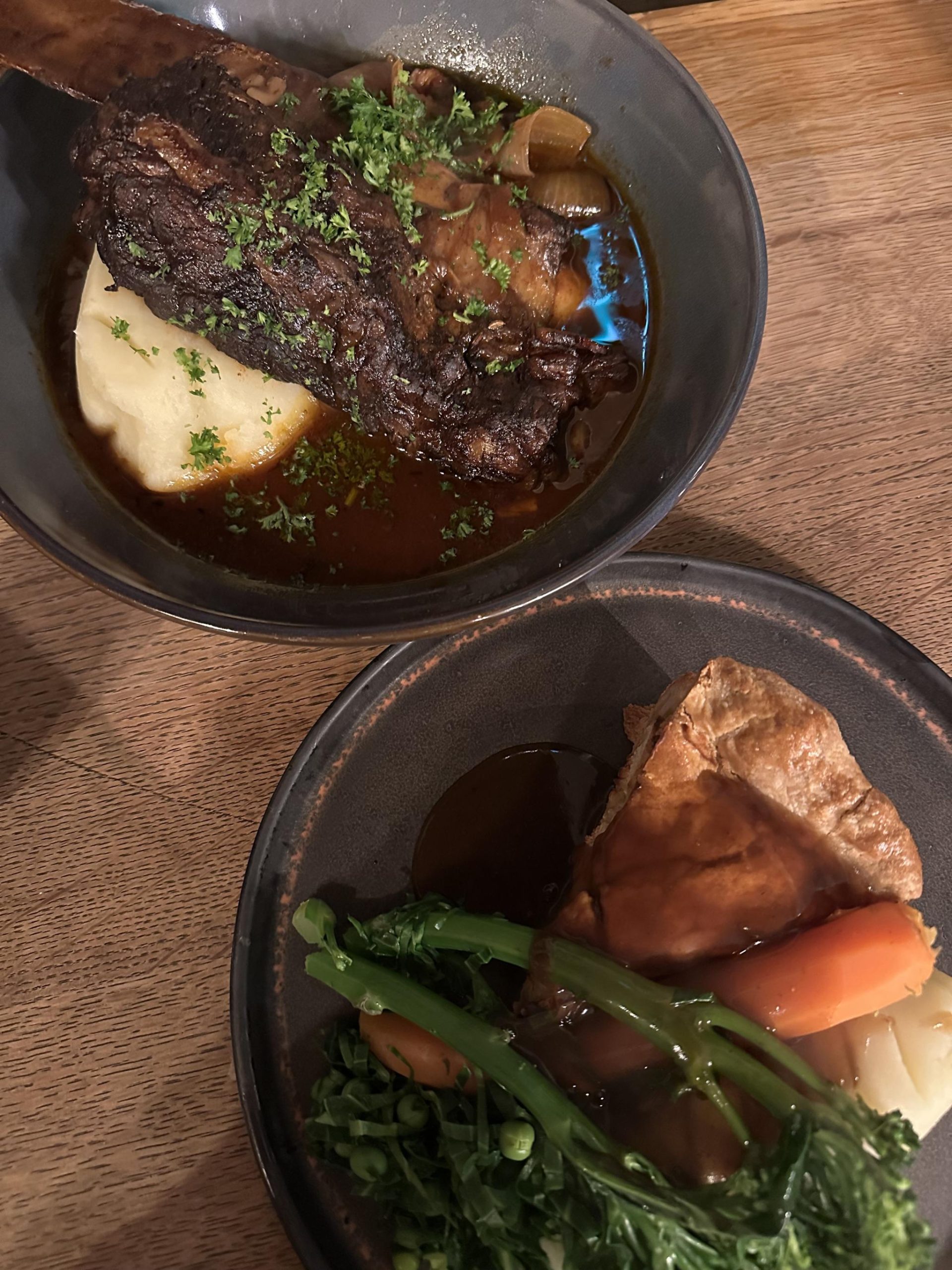 Upon arrival, I was absolutely blown away by The Old Potting Shed. It was huge, charming, and full of character. The space felt both cosy and luxurious, making it the perfect retreat for a peaceful getaway. After unpacking and settling in, we headed out for dinner at The Horseshoe which was just a short walk away. Walking into The Horseshoe felt like stepping into medieval times. The atmosphere was warm and inviting, with rustic interiors and hearty food that made for an unforgettable dining experience (top tip! book ahead as we were lucky to get a table). After a delicious meal, we headed back to our home for the weekend, eager to unwind.