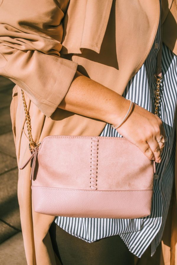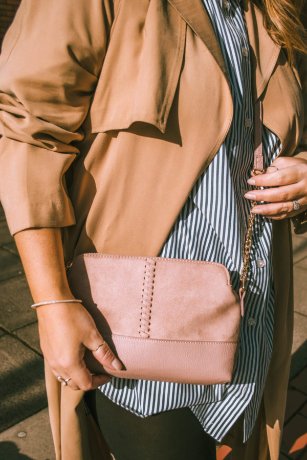Along with my boot obsession, if you asked Gareth what my biggest shopping habit is, he is 100% guaranteed to say handbags. He’s not wrong! I just love them. I’m so in love with this little ‘Whipstitch Cross Body Bag’ which is perfect for transitioning into spring. This neutral dusty pink handbag gave a little pop of colour to my on-trend look this weekend.