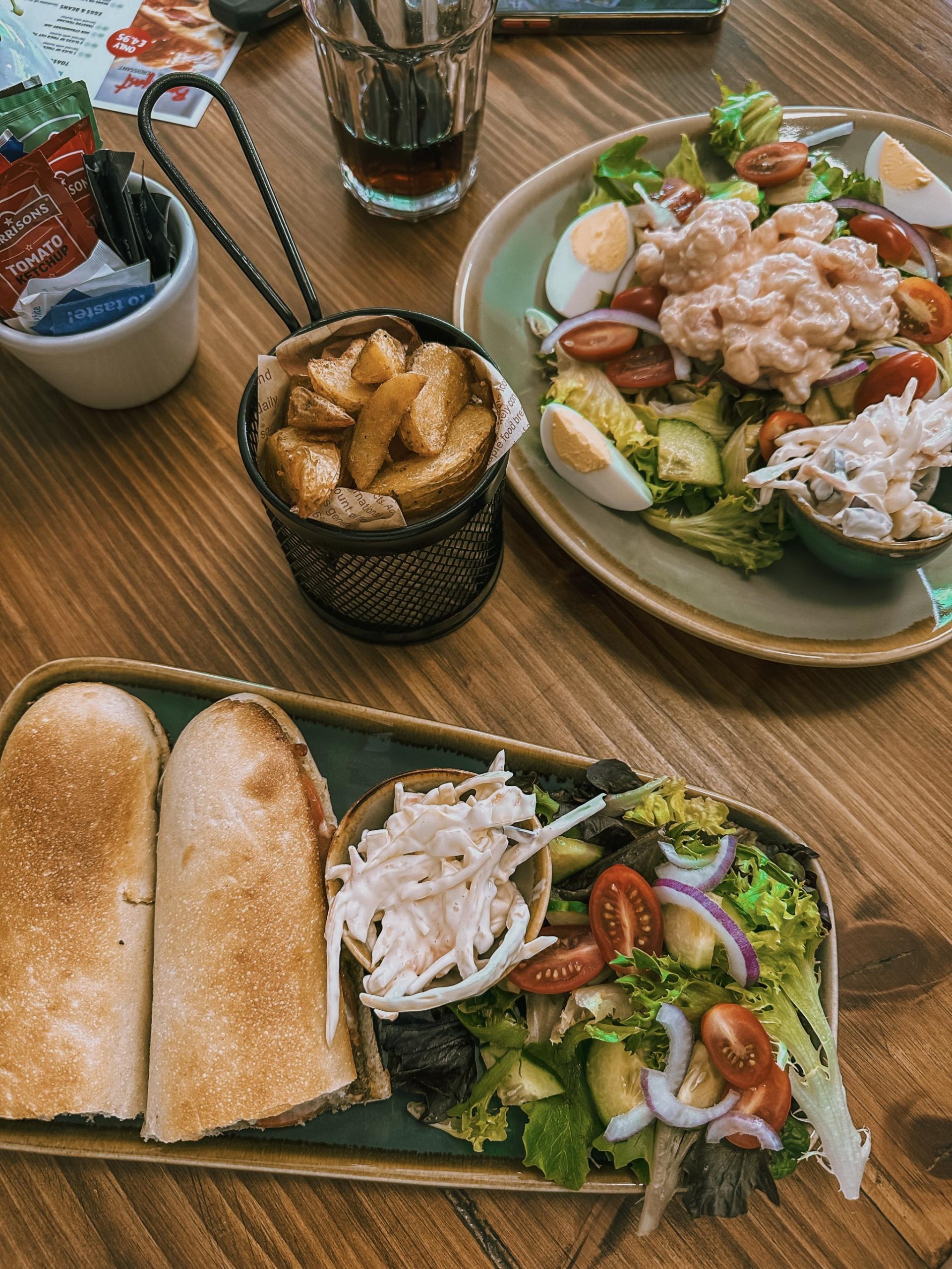 We woke up by the delightful chirping of birds in the morning, making it feel like paradise. We decided to go on a 2.5-hour walk to Spur Point, Yorkshire’s version of Lands End, it even had a lighthouse. Following our walk, we were recommended to try Cakey Bakey Yum Yum for a tasty meal, conveniently located right near our shepherd’s hut. I opted for the mozzarella and pesto panini, and we also shared a brownie after – you have to have dessert right? Later, we stopped by the local shop to grab marshmallows, chocolate, and biscuits for our DIY s’mores by the fire pit that night.