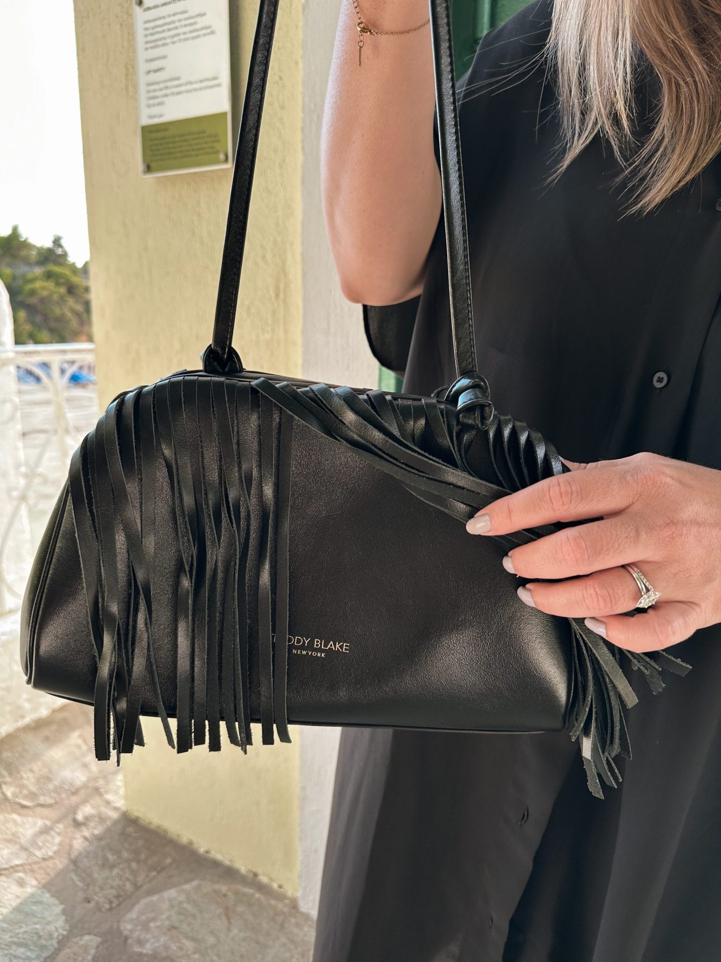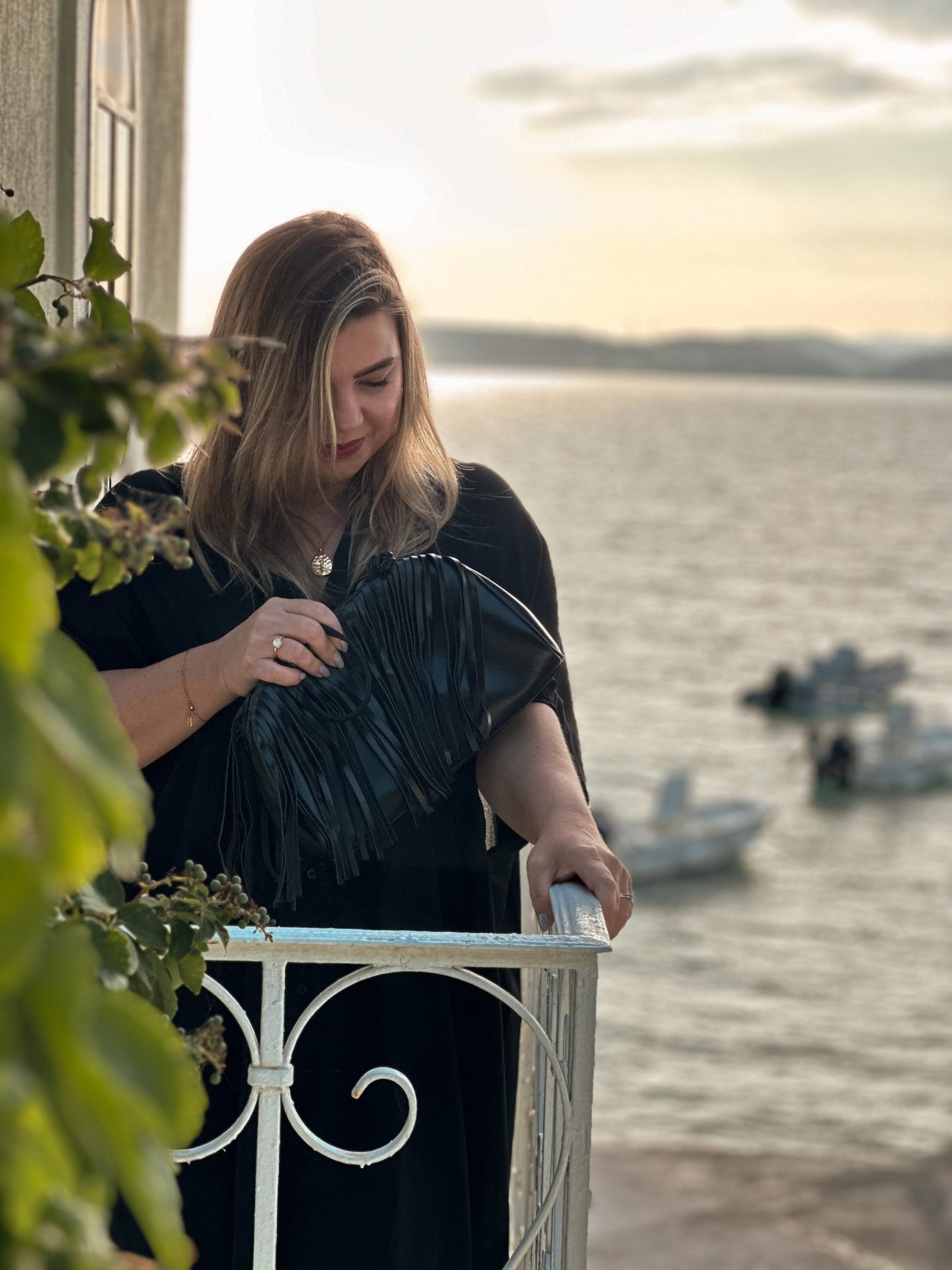 Picture this: you’re strolling through pastel-coloured villages, stopping for gelato, and snapping pics by the harbour. A simple linen dress and flat sandals keep things comfy, but add the Aria Bag and suddenly the whole look feels polished. The black leather makes it super versatile, while the fringe detail adds that “I just threw this on but still look chic” vibe.