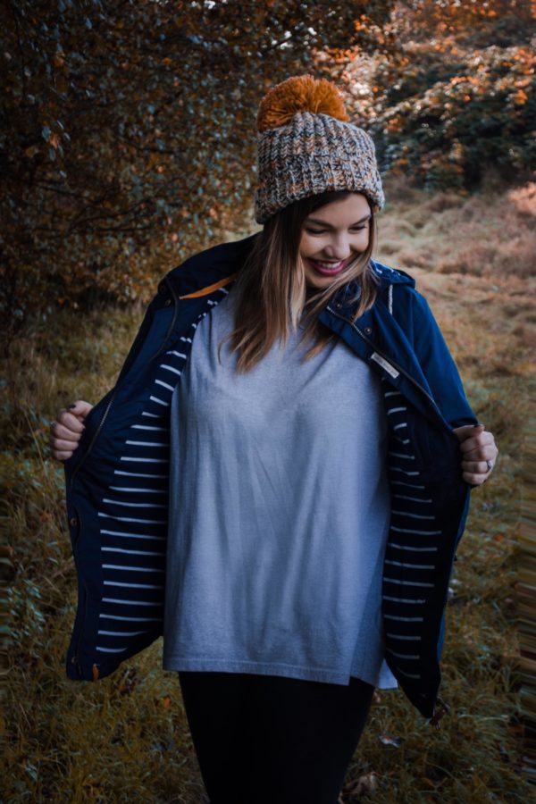 I decided to go for the Iona Waterproof Jacket in colour Midnight as I felt it just suited me down to a tee. It’s so comfortable and it’s perfect for that casual look. Think country walks or heading into town to do some shopping, this would be the perfect jacket for you. It has a soft jersey nautical stripe lining, along with cosy insulated padding. It also has an adjustable hood. I do wish I had sized up in this jacket as I do love the oversized look, so if you are like me, then size up, but other than that they are true to size.