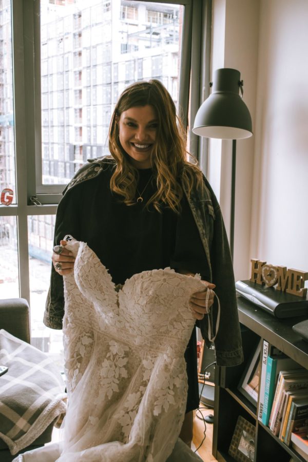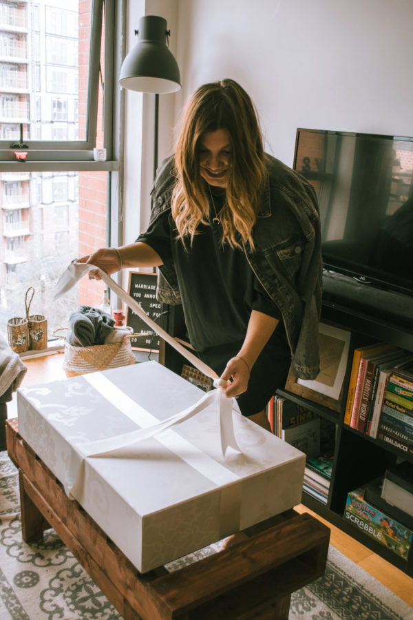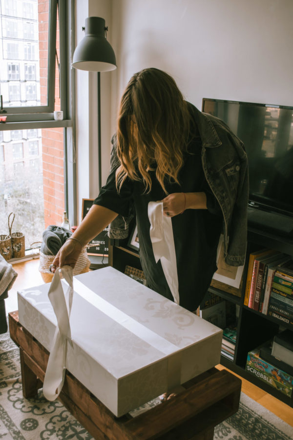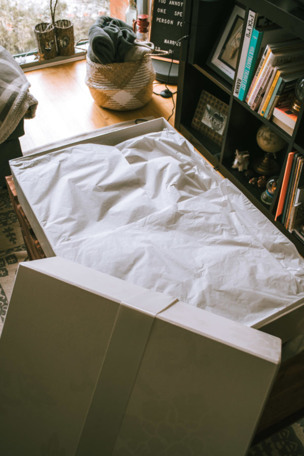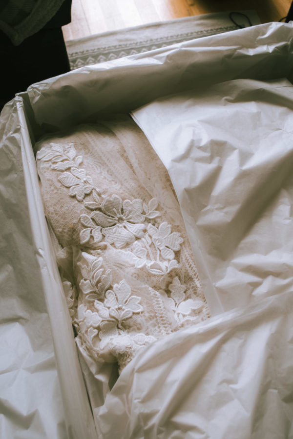 Fast forward to the beginning of March and the moment I had been waiting for had arrived. I felt like I was getting married all over again. My stunning Essense of Australia wedding dress had returned from its luxury dress cleaning service at Amy’s Laundry and I was just so excited to see it again. It arrived in one of their beautiful handmade storage boxes – I actually love this idea as I was so worried where I would store my wedding dress in my wardrobe as I literally have no room, but with a storage box it’s just so much easier to store away. These do come at an extra charge, however I would honestly 100% recommend one if you don’t have one already. As soon as I opened the box, I was blown away and I’m not going to lie when I say that I got a little teary. It looks exactly as it did back in the beautiful wedding dress store and I couldn’t be happier.